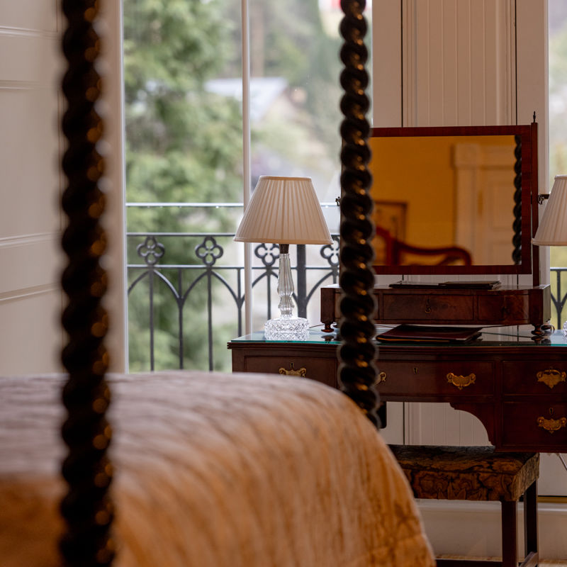 All our historic castle rooms are in our main castle building and are rich in period character. Expect high ceilings, antique furniture and a more traditional aesthetic. The Lindsay is a Tower Suite.